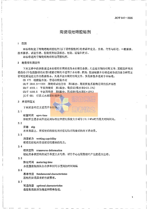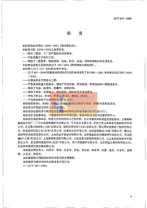 《陶瓷墻地磚膠粘劑》行業(yè)標準