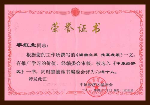 2011年,李紅業(yè)先生榮獲先進個人獎。